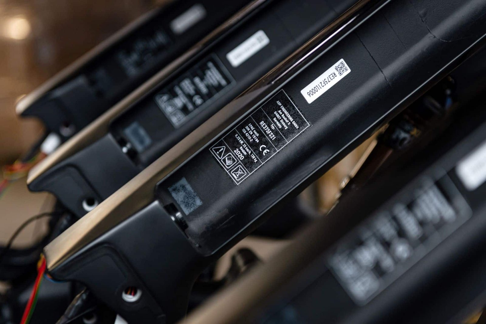 Normalmente de iones de litio, las baterías se montan en el cuadro o en el portaequipajes trasero. Una batería de alta capacidad (por ejemplo, 720 Wh) puede soportar más de 60 km de conducción asistida. Regen utiliza baterías certificadas según las normas UE/CE de marcas como LG y Panasonic.